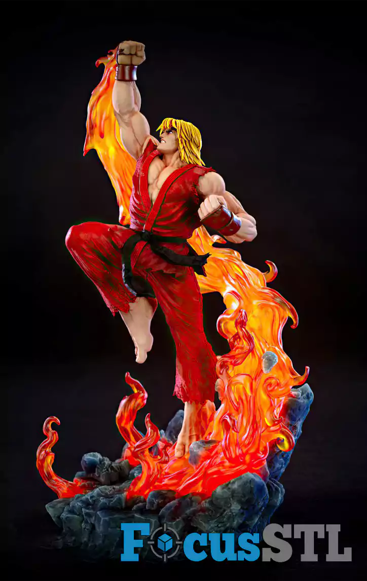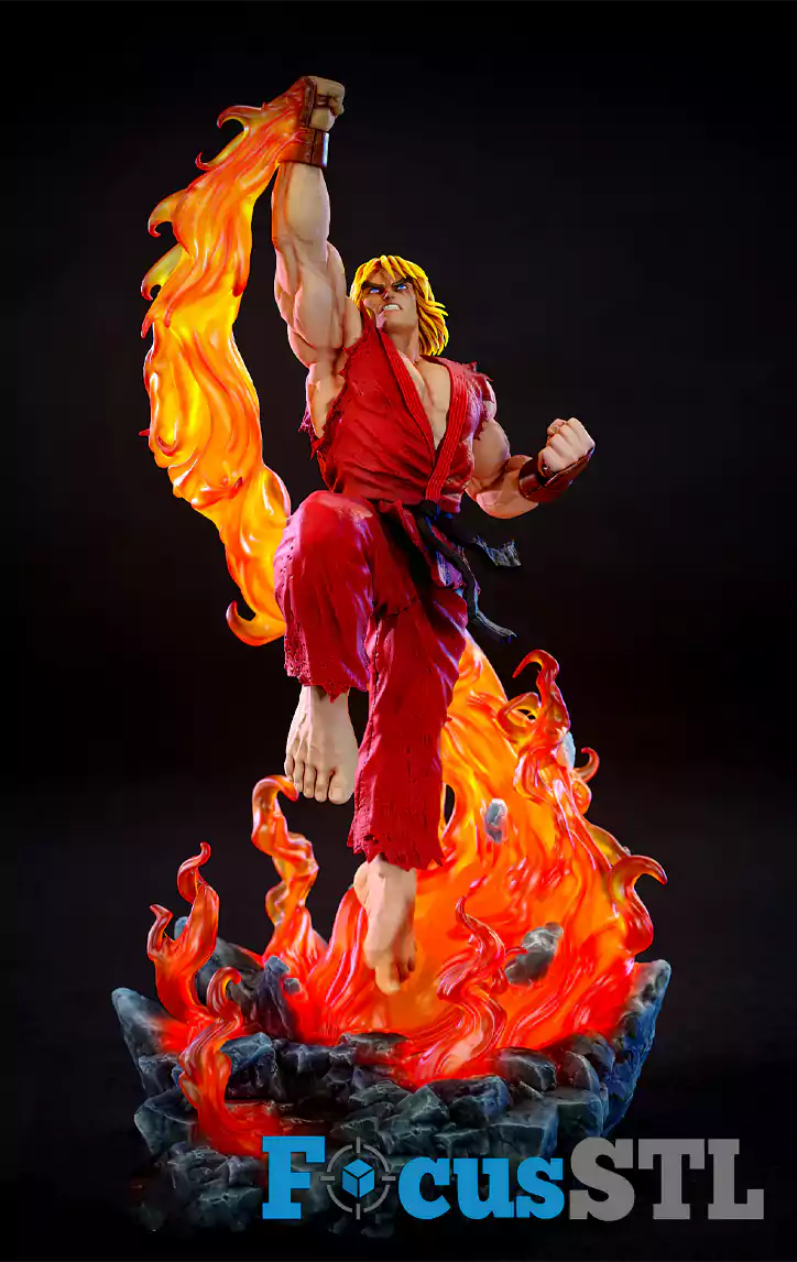 Bring the flames of battle to life with the Ken Fire Fist STL 3D Print Files, inspired by the legendary Street Fighter warrior Ken Masters. This high-detail model captures the explosive moment of his iconic Shoryuken, surrounded by blazing flames that radiate pure power and motion.