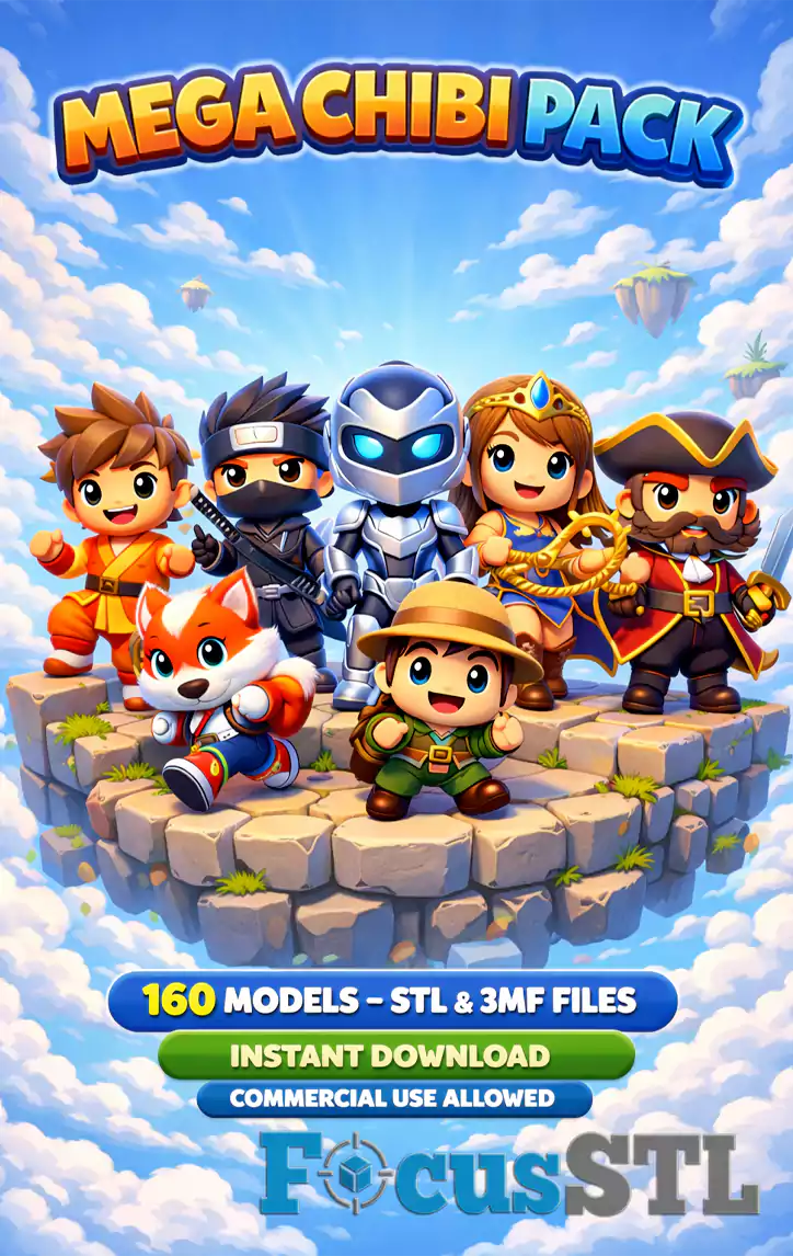 Bring your 3D printer to life with this Mega Chibi Pack 160 Models STL Files featuring characters from anime, comics, movies, video games, and more. This bundle is perfect for collectors, sellers, and 3D printing fans who love cute, stylized chibi figures with clean, high-detail sculpts.