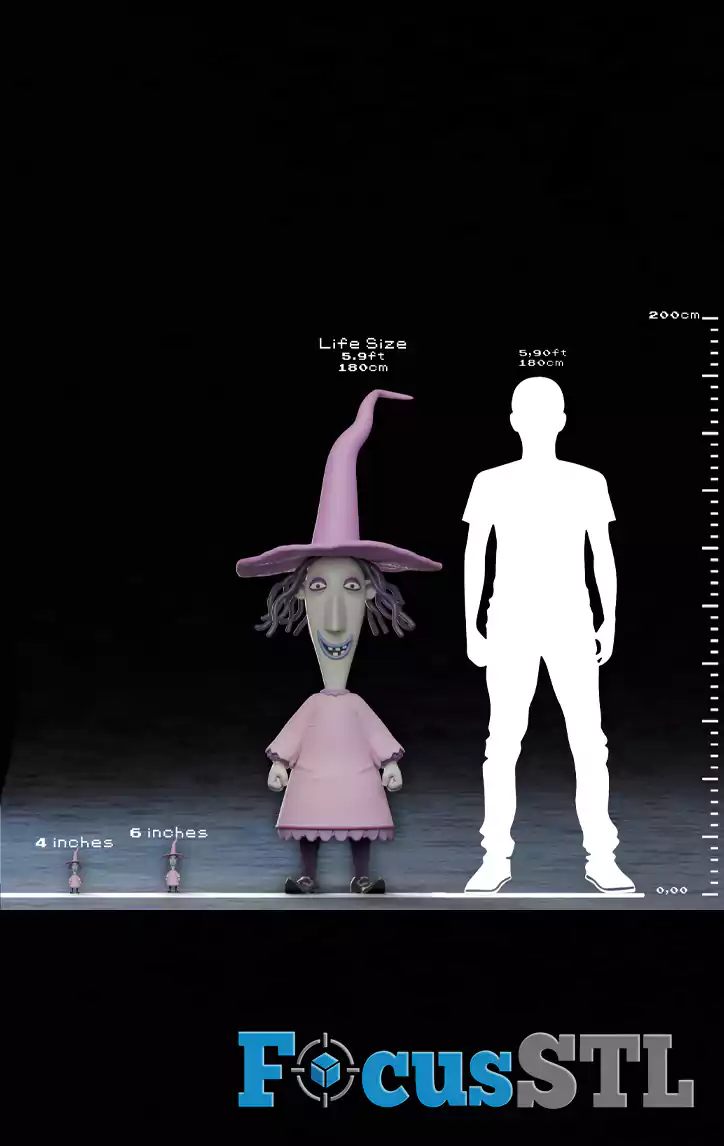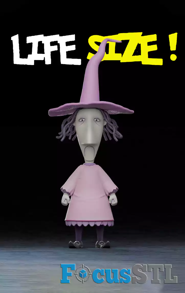 Bring Nightmare Before Christmas Shock STL Files with this premium multi-scale STL pack. This detailed model captures her witch hat, mischievous grin, long dress, and spooky charm—perfect for fans, collectors, and prop makers. With three print-ready sizes including a full life-size version, this model is designed for both display and creative Halloween builds.