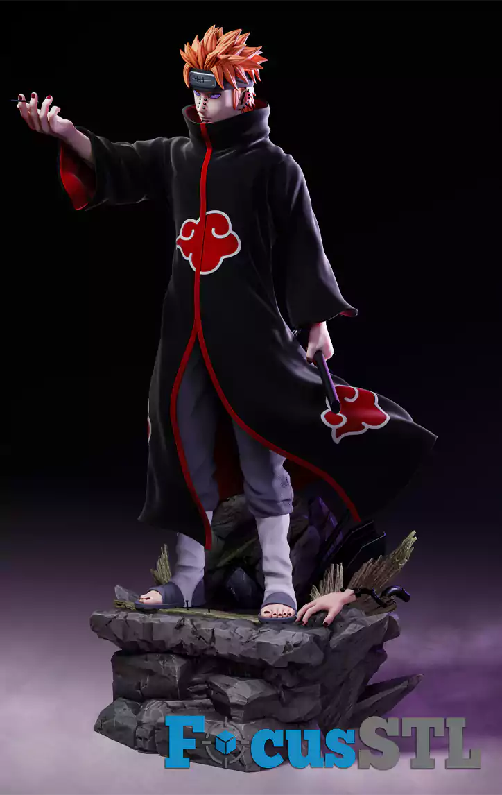 Pain Nagato Full Statue Model: Faithful 3D sculpt featuring Pain in an iconic commanding pose with Akatsuki robes.