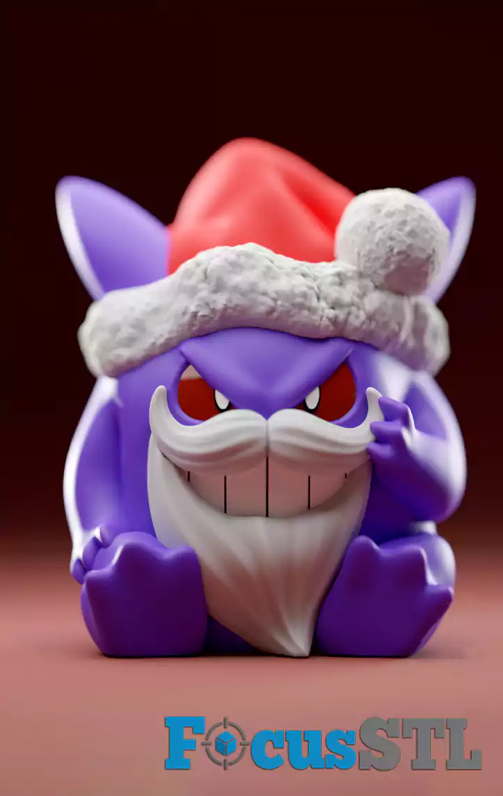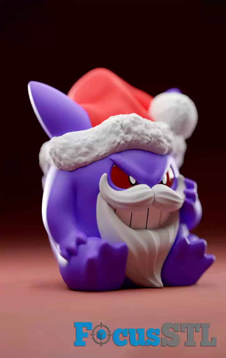 Gengar Christmas Version – spooky Pokémon with Santa beard and hat