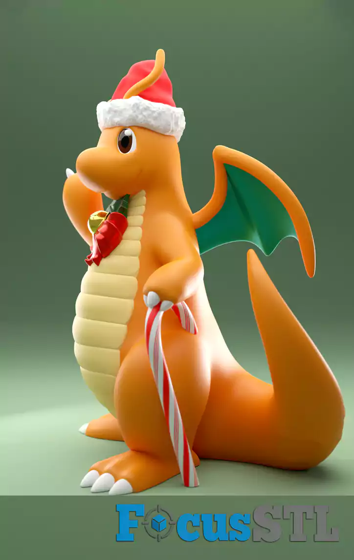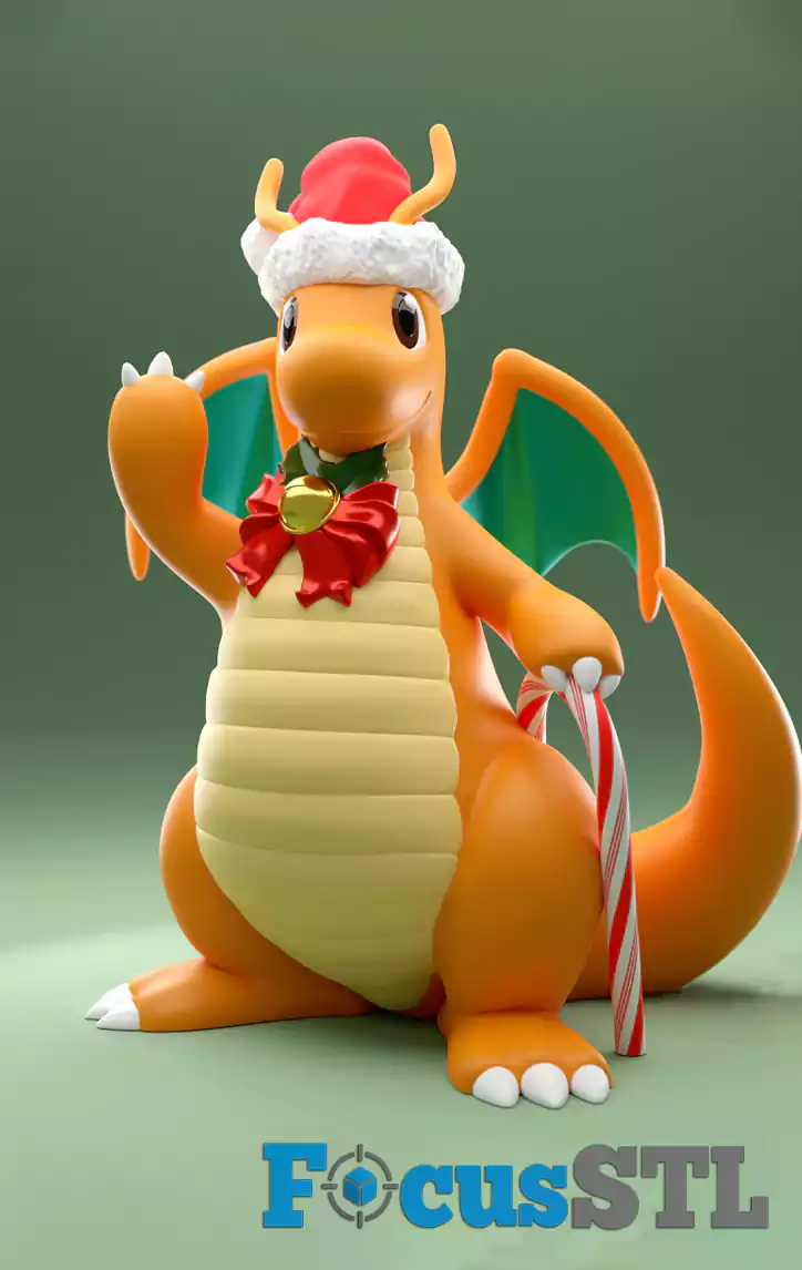 Dragonite Christmas Version – holiday spirit with candy cane and wreath