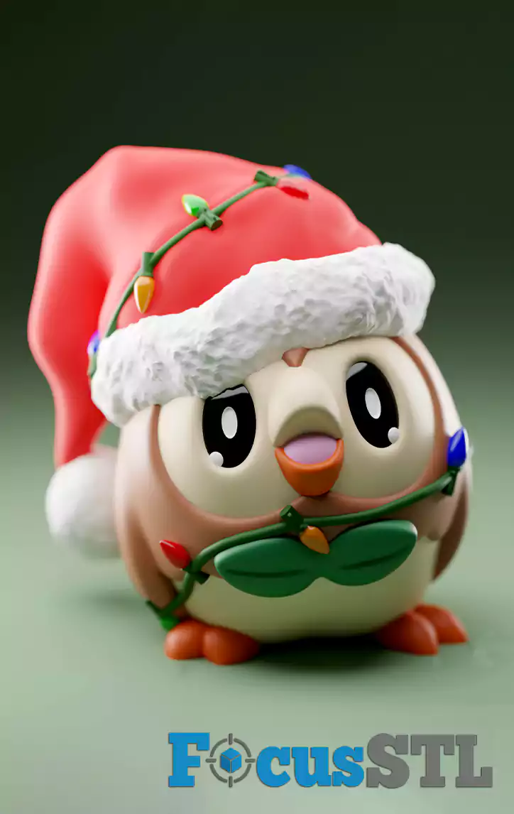 Rowlet Christmas Version – owl Pokémon in Santa hat style