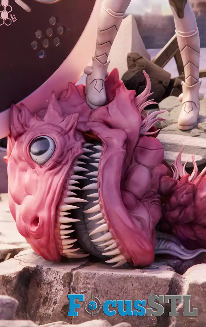 One Full Statue Base – destroyed kaiju head and rubble environment.