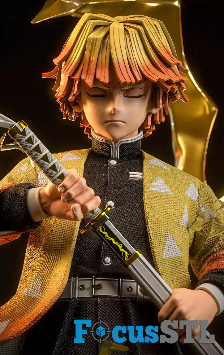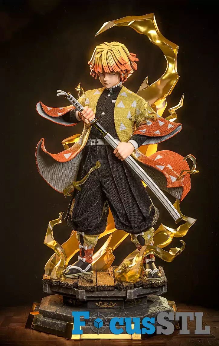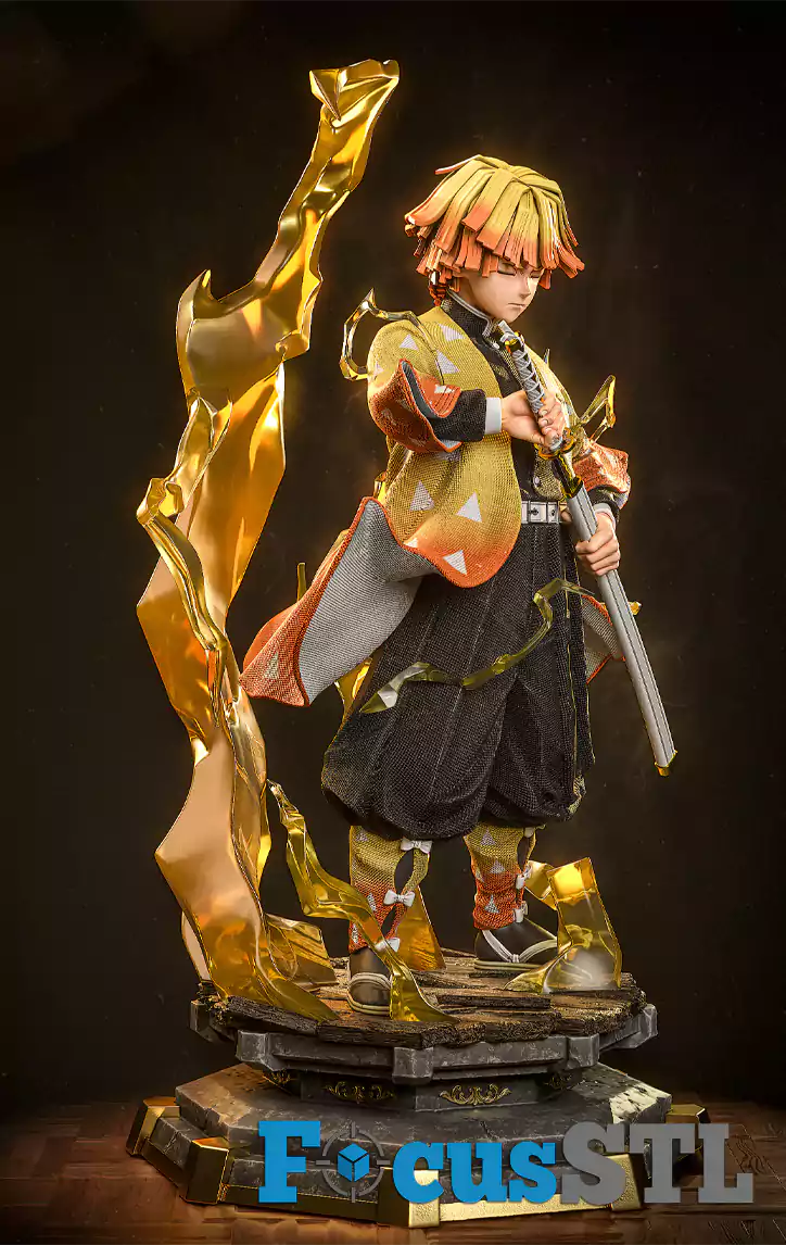 Unleash the power of lightning with the Zenitsu Agatsuma Thunder STL 3D Print Model, inspired by the electrifying warrior from Demon Slayer. Captured in a moment of calm before his thunderous strike, this detailed 3D sculpture embodies Zenitsu’s duality — fear and fierce strength — surrounded by a striking thunder aura base that amplifies his energy and motion.